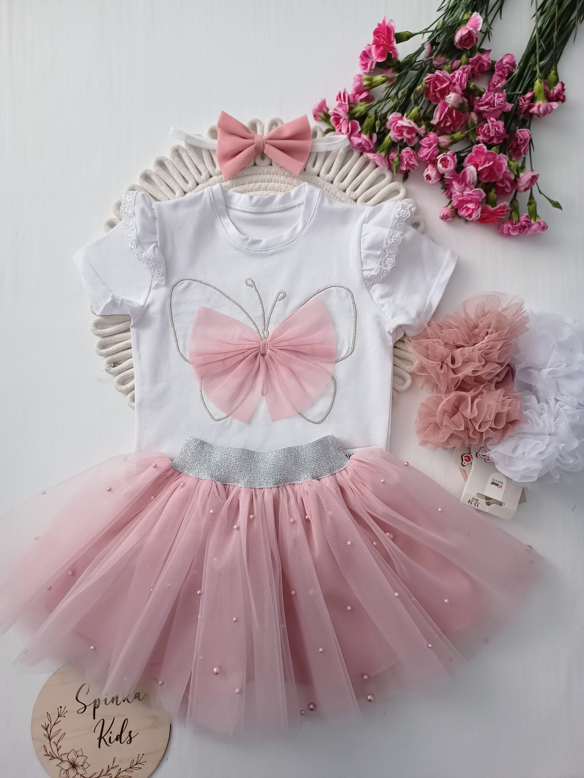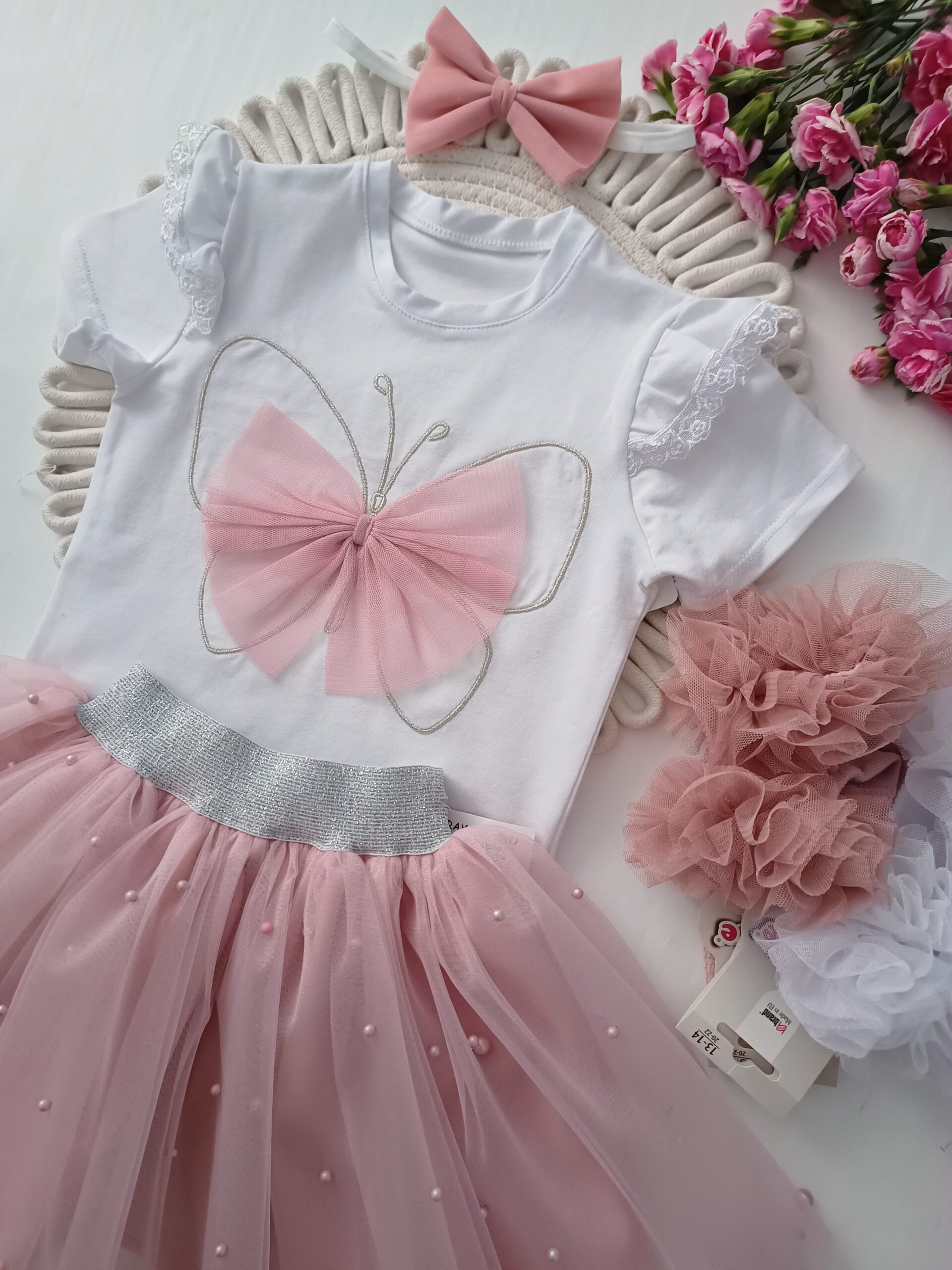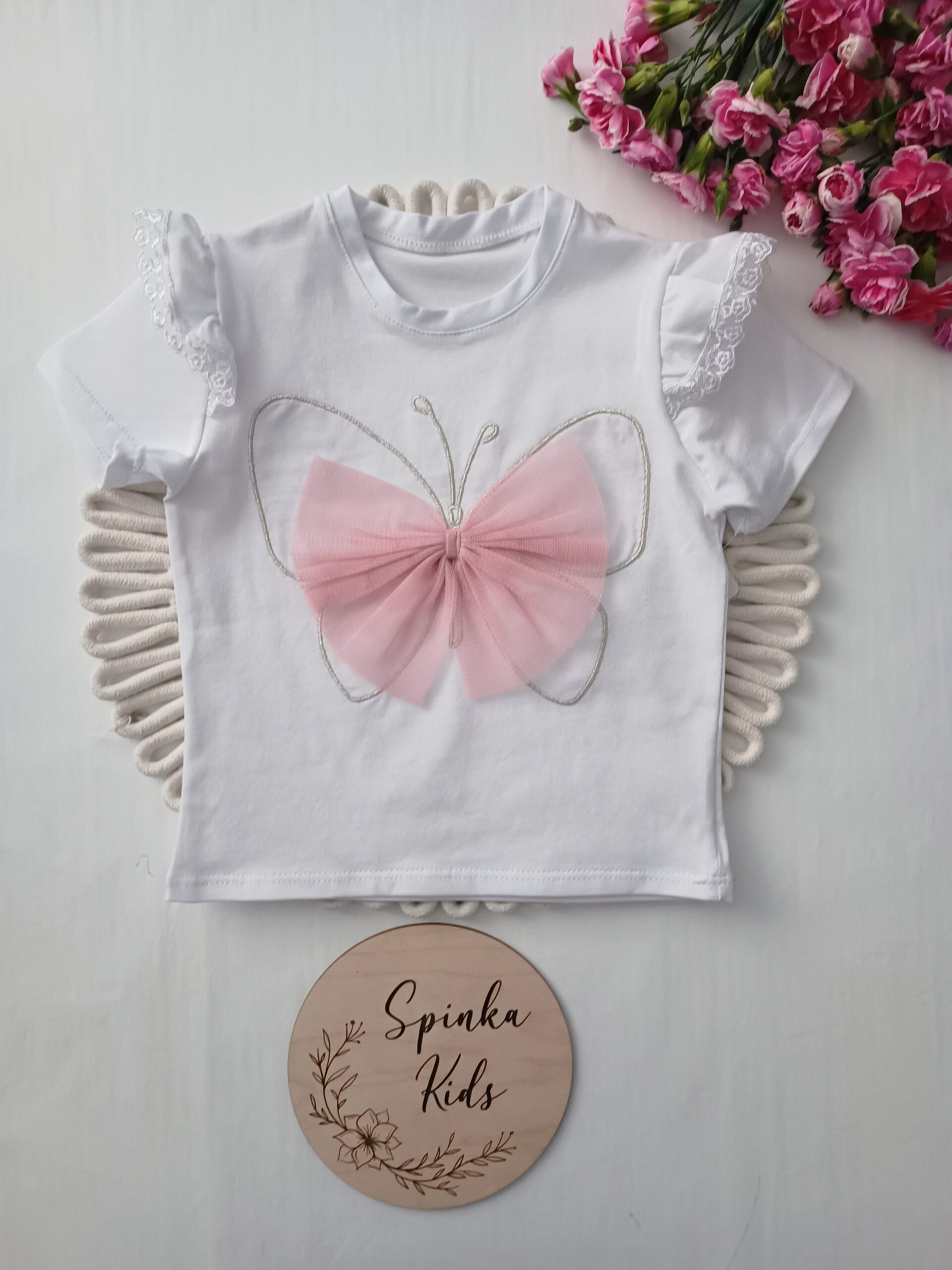 Biała bluzeczka z tiulowymi motylkiem