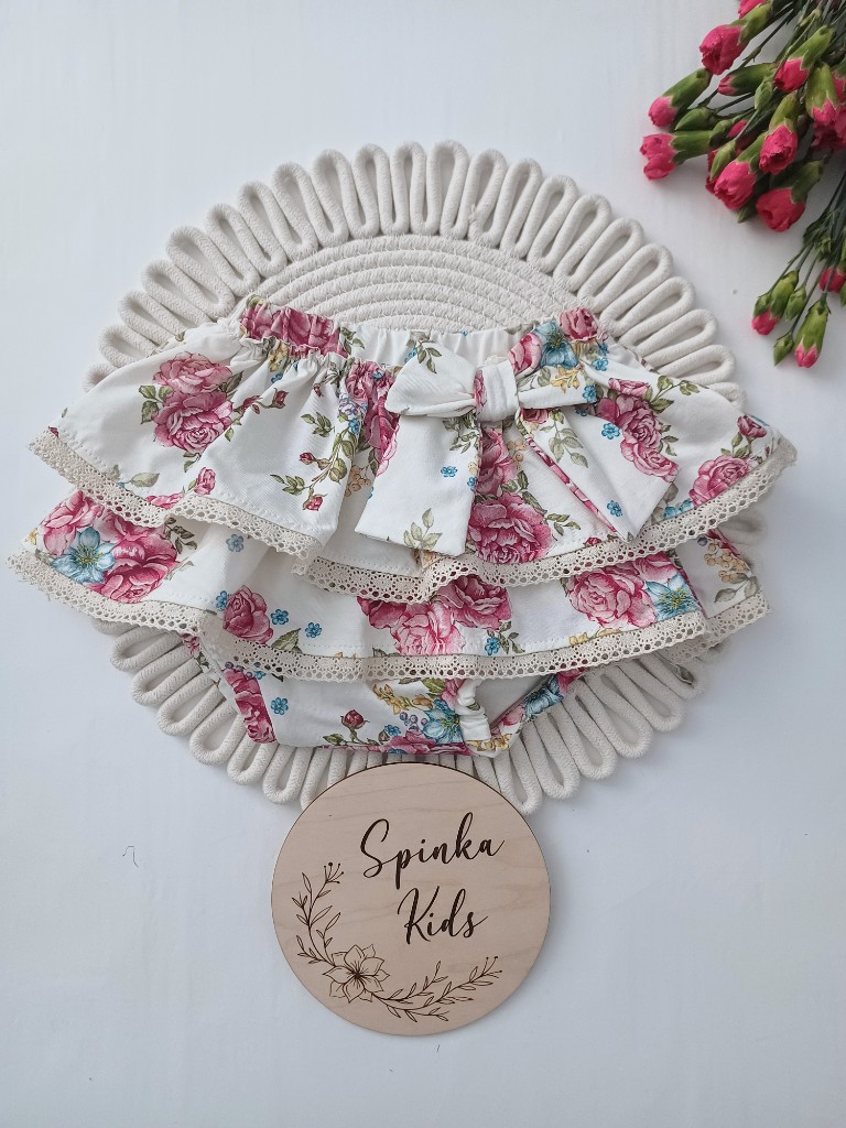 Bloomers w rozmiarach: 86,92,98,104,110. Spódniczka w rozmiarach:116,122,128,134.