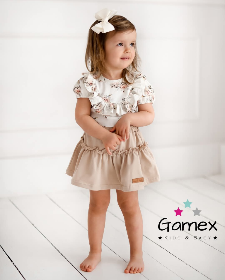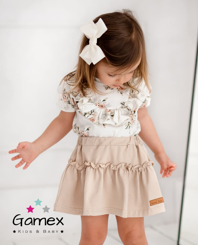 Rozmiar:62,68,74,80,86-body i spódniczka. Rozmiar 98,104,110-bluzka i spódniczka.