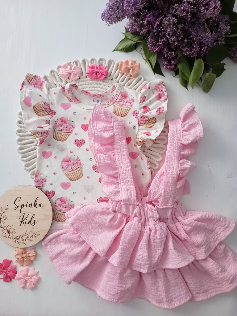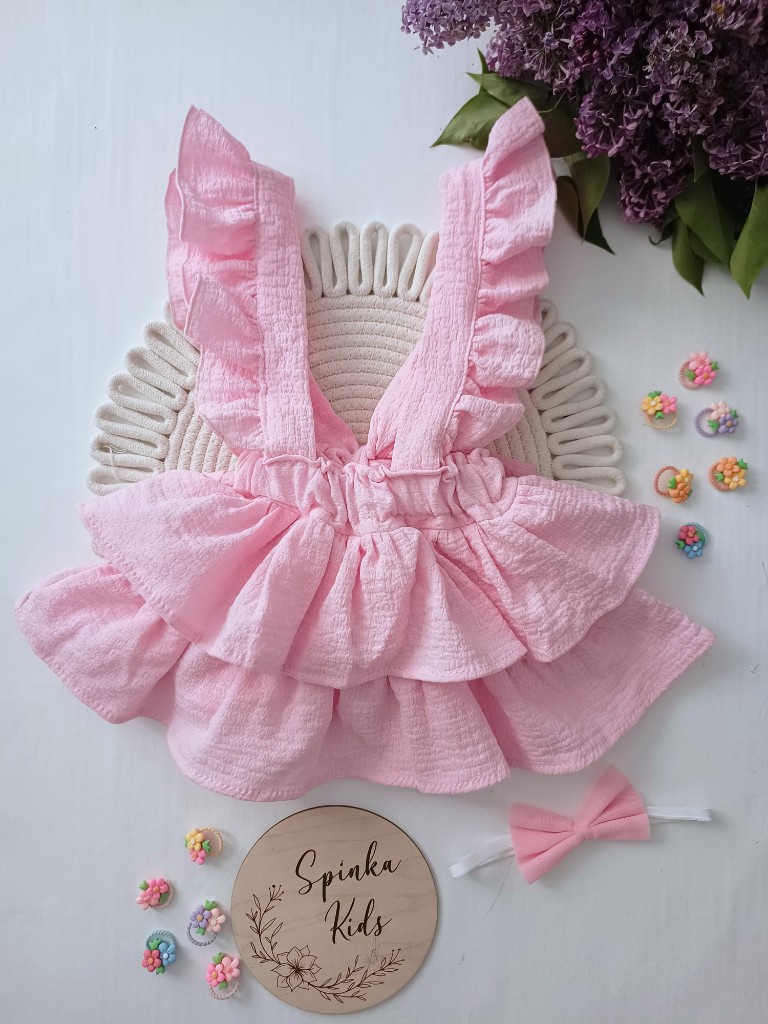 Spódniczka na szelkach muślinowa – róż
